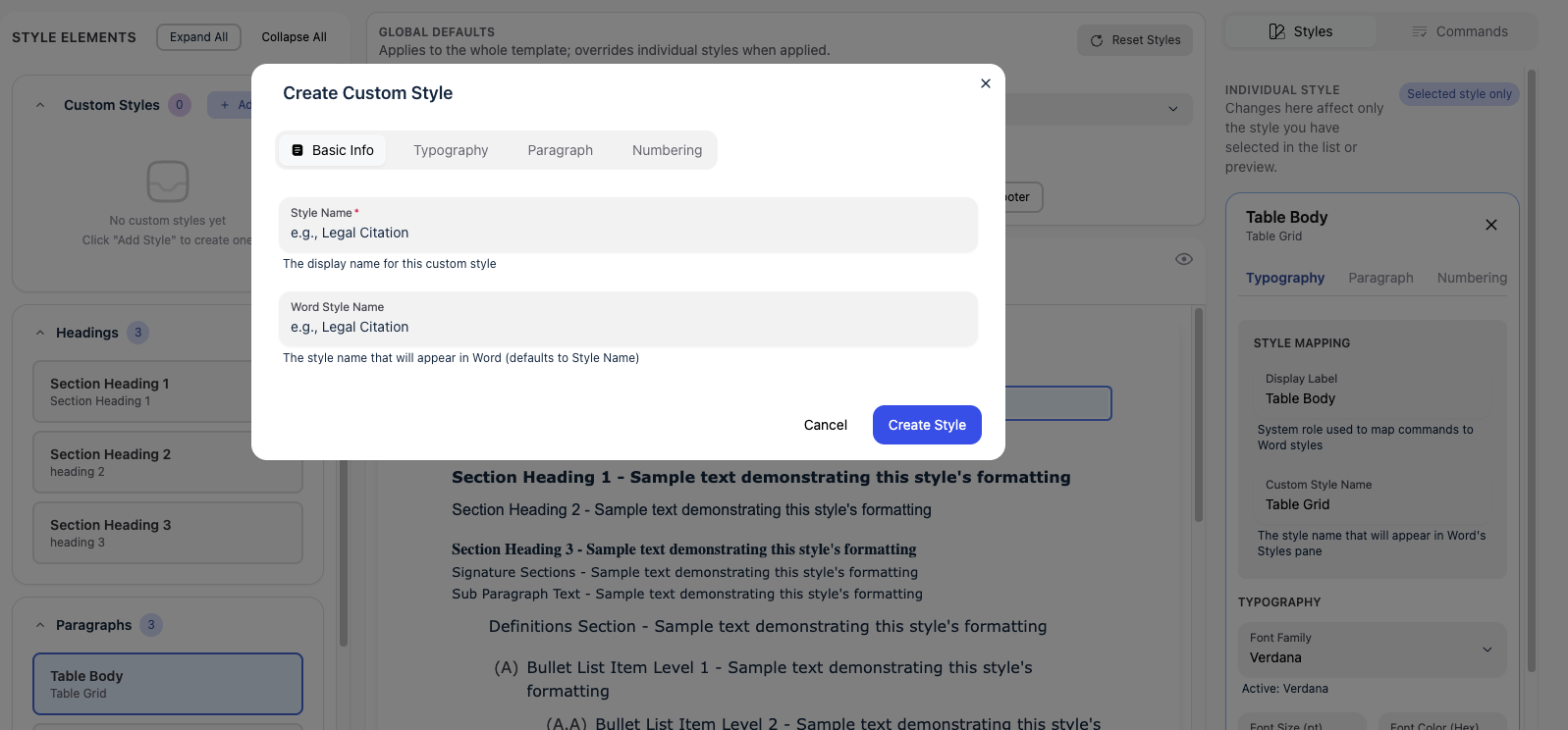 Take template customization to the next level by creating brand new custom styles tailored to your specific formatting requirements. No longer limited to editing existing styles - now you can build entirely new ones with full control over every property.