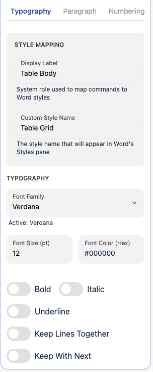 | Paragraph Text | Applies body text styles to remaining paragraphs. |